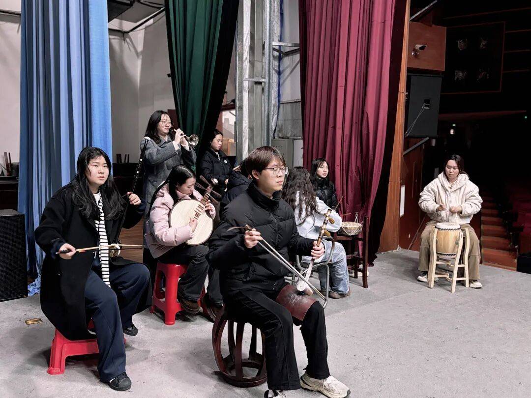 所有演员装扮停当踏入排练厅,铿锵锣鼓与悠扬弦乐即刻扑面而来,浓郁的戏曲韵味浸润全场。胡琴、二胡、月琴、三弦等传统乐器默契配合、精准和鸣,演员们瞬间投入状态,反复走台、对唱、走位,从唱腔吐字的抑扬顿挫,到舞台走位的分毫精准,每一处细节都精益求精、力求完美。“宜黄戏自成体系、声腔独树一帜,核心二凡腔板式丰富多变,是弥足珍贵的古老大剧种。”青年演员连邹铭语气坚定,“能在新春佳节为乡亲们登台献艺,既是责任也是光荣,必将倾尽心力排练,把最精彩的表演献给家乡父老。”